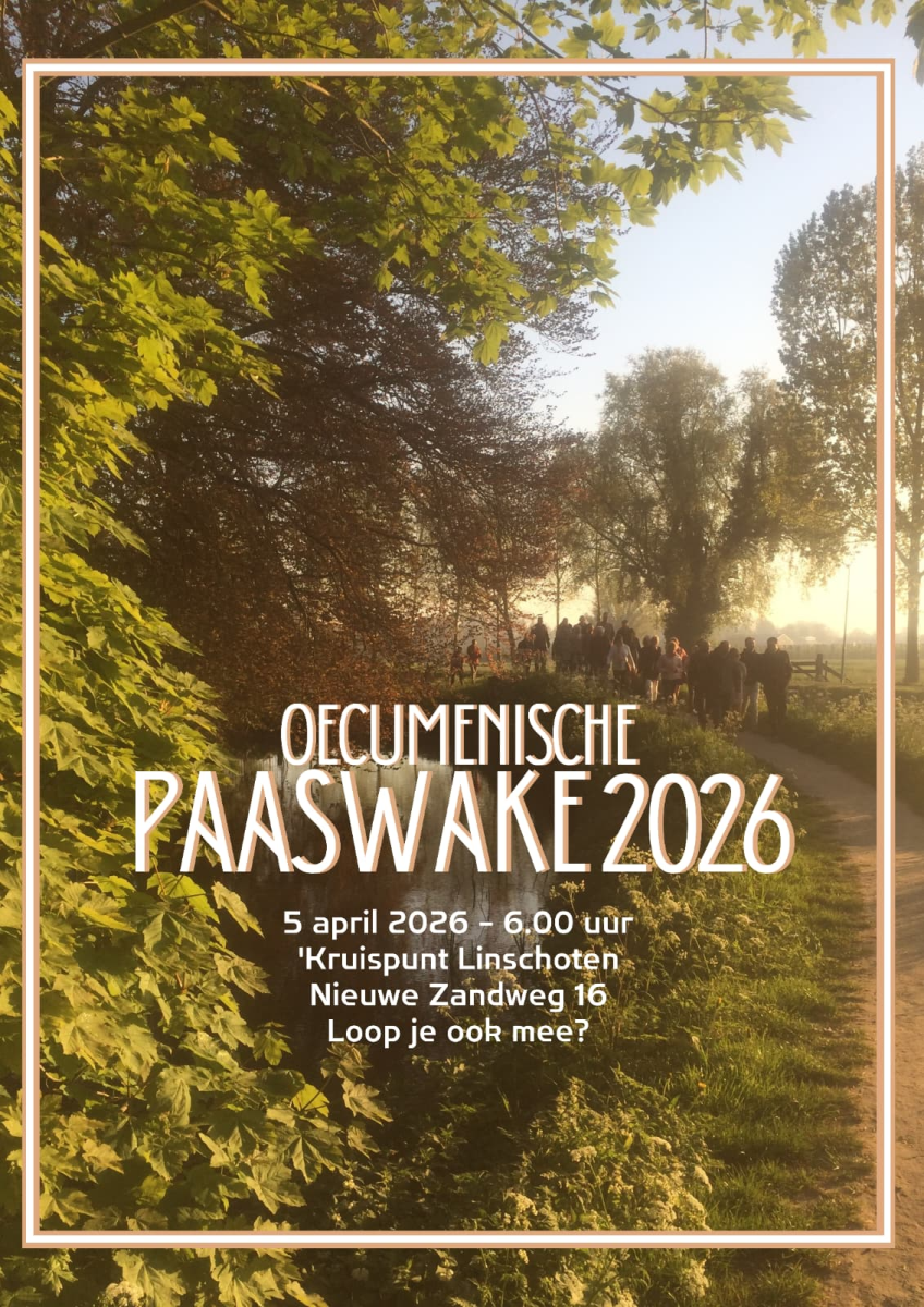 ![]() Welkom bij de oecumenische Paaswake met aansluitend een wandeling rond het Linschoterbos. Bij terugkomst staat er in 't Kruispunt een ontbijtje klaar. Aanmelden is niet nodig. |