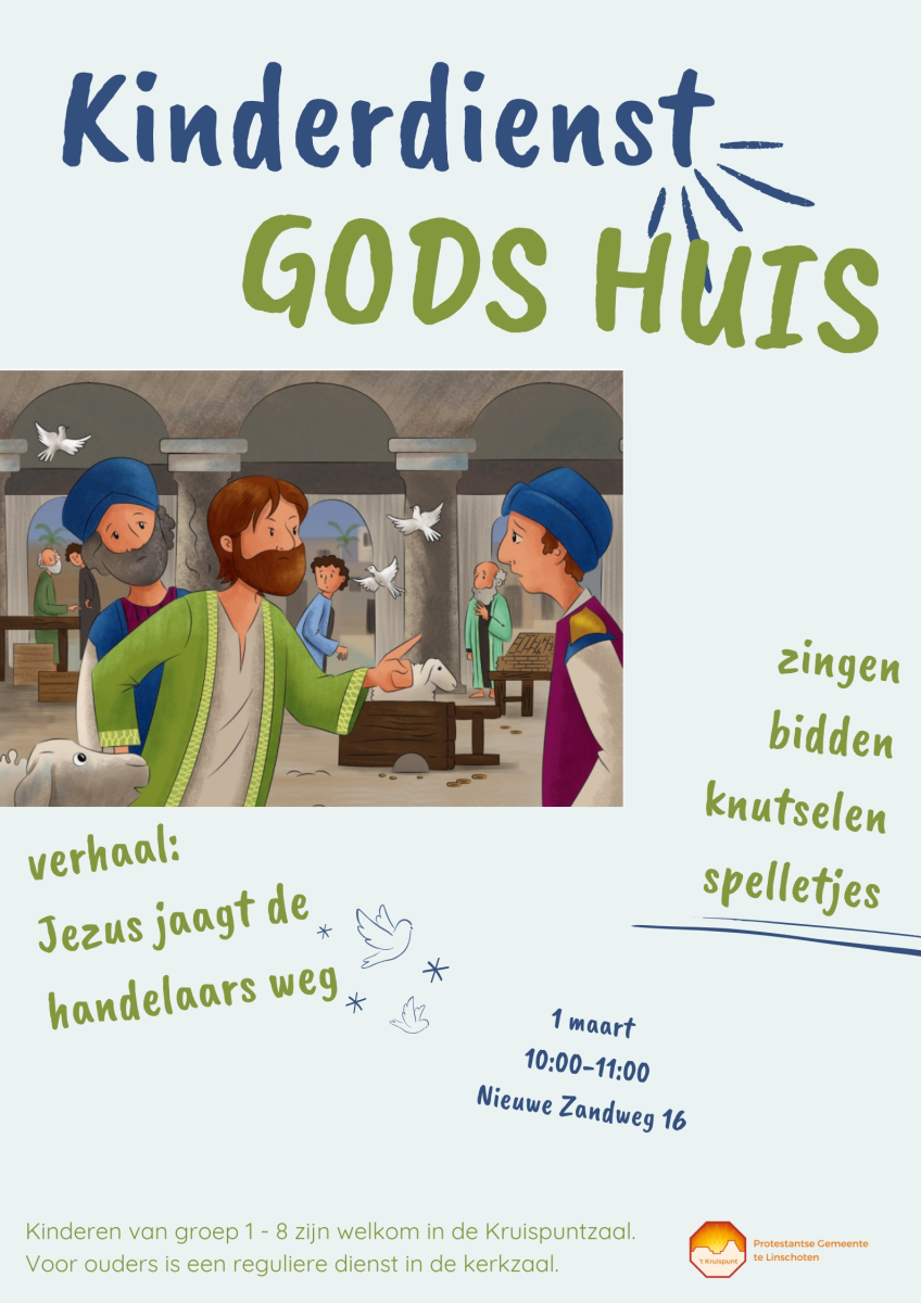 ![]() In de kinderdienst gaan we een vol uur aan de slag met kinderen van groep 1 t/m 8. We luisteren naar een verhaal en gaan daarna creatief aan de slag. Neem gerust een vriendje of vriendinnetje mee. Van harte welkom! |